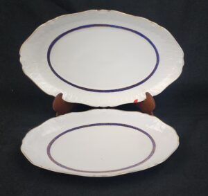 Travessa oval em porcelana americana HOMER LAUGHLIN decorada em azul.
